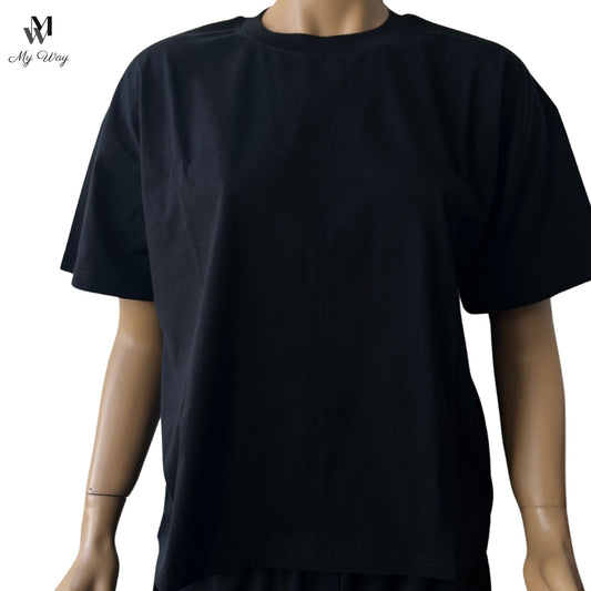 Schwarzes Relaxed Oversize Kurzarm Shirt aus reiner Baumwolle für Damen