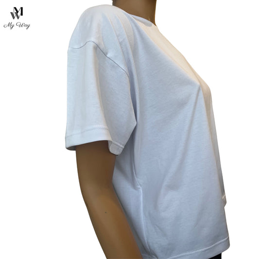 Weißes Relaxed Oversize Kurzarm Shirt aus reiner Baumwolle für Damen